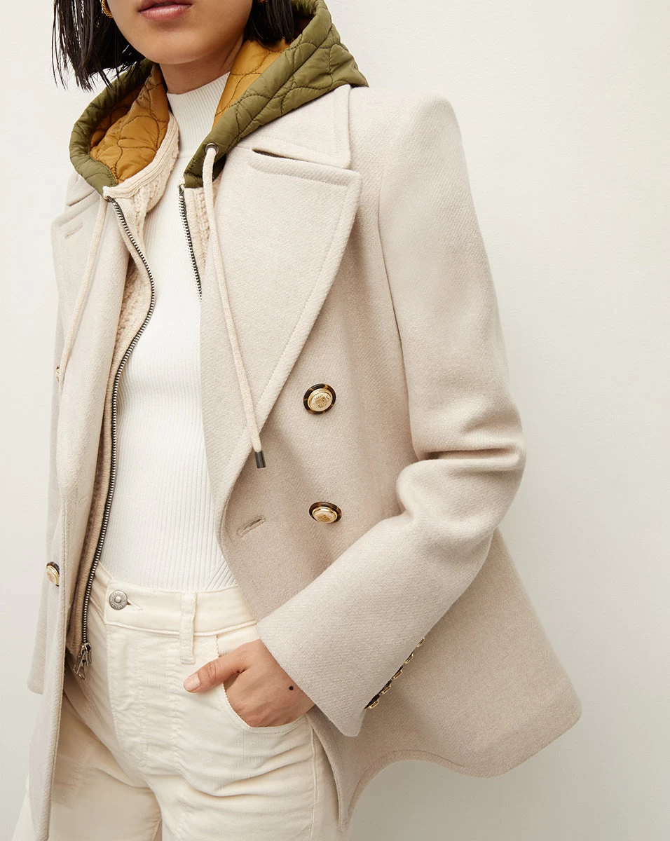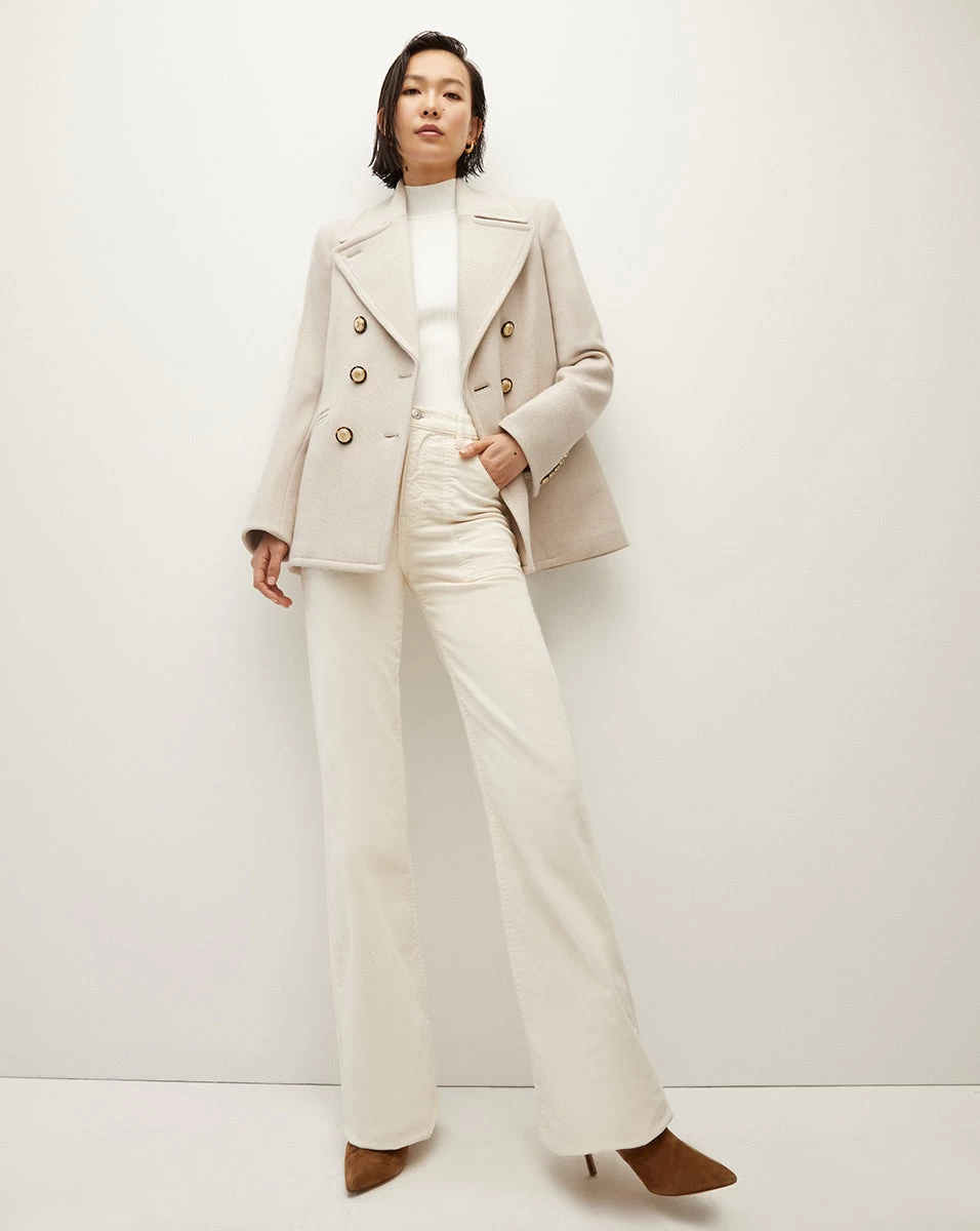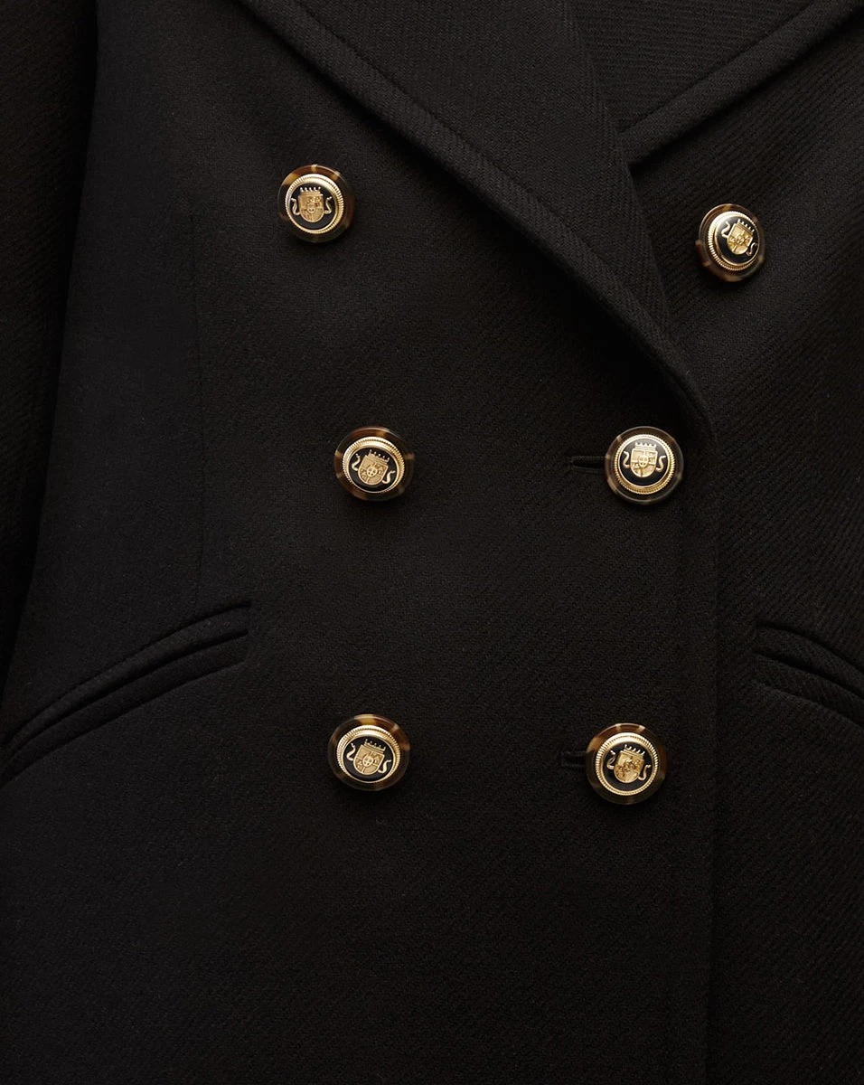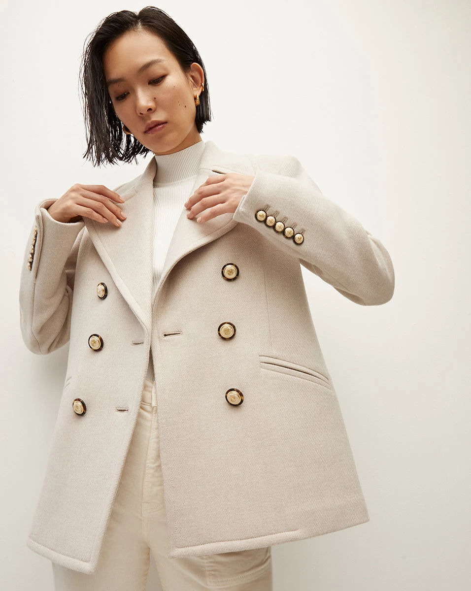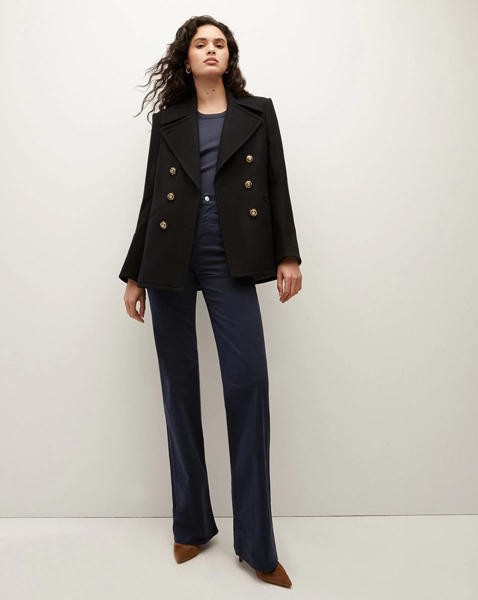 Our take on the classic peacoat, the Amira is crafted from a transitional luxury wool-twill blend. It’s relaxed yet sleek, giving you a streamlined shape while still allowing layering. Detailed with our signature gold crest buttons, it will be worn on repeat thanks to its timeless design. Plus, it’s dickey compatible, allowing you to change up its look with ease. The perfect dose of casual sophistication to fold into your everyday look—throw it over any and every outfit.