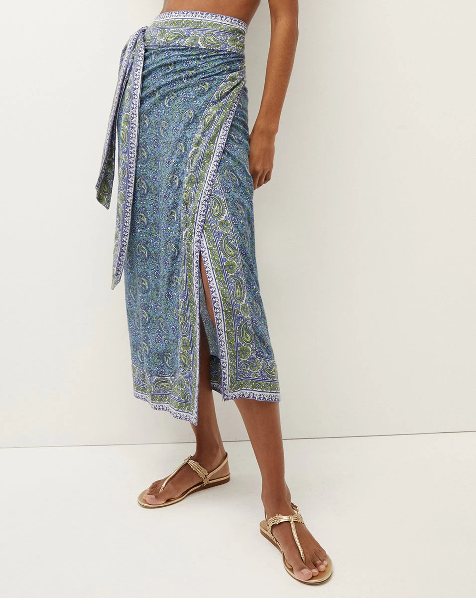 In our vintage paisley print, the Amura skirt is the coverup you need this summer. The wrap style piece features a tie waist, side slit, and maxi length. In a comfortable and lightweight cotton blend, this effortless skirt will make a statement on the beach and beyond.
