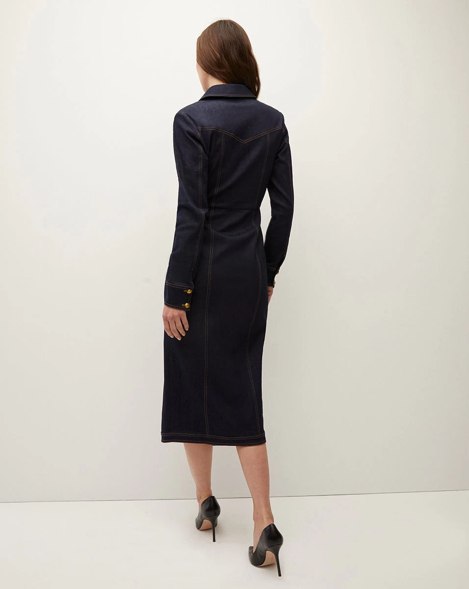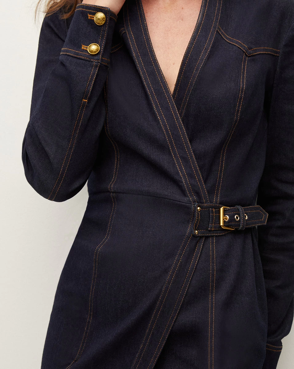 A sophisticated essential you’ll own forever and wear often, the Arlington is distinctive, tailored take on the classic wrap dress. It’s crafted in our ultra-comfortable stretch-denim in a versatile dark wash. Thoughtful yet uncomplicated in its design, the Arlington is detailed with contrast seaming and a gold-buckle belt—accentuating the waistline for flattering definition. Wear with sleek heels for now; switch to boots later.