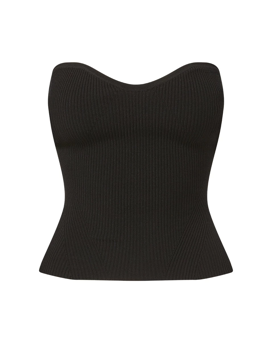 Sexy meets sophisticated with the Azura top. Crafted from a ribbed stretch yarn, it contours the body with its figure-hugging fit. A feminine sweetheart neckline completes the look. Layer it under a jacket, or balance proportions by wearing it solo with relaxed wide-leg pants.