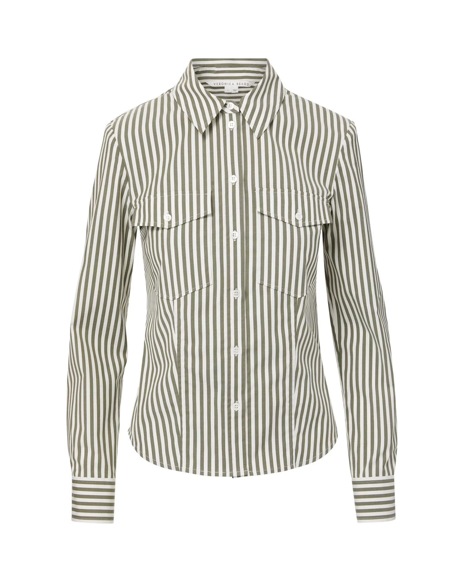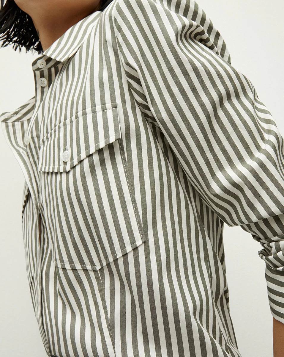 The classic shirting you need: the Barnette. It’s tailored from a stretch cotton-poplin that’s printed with cool stripes. Two patch pockets and functional button cuffs complete the look. Wear it with wide-leg jeans or unbuttoned over a bathing suit to master casual elegance.