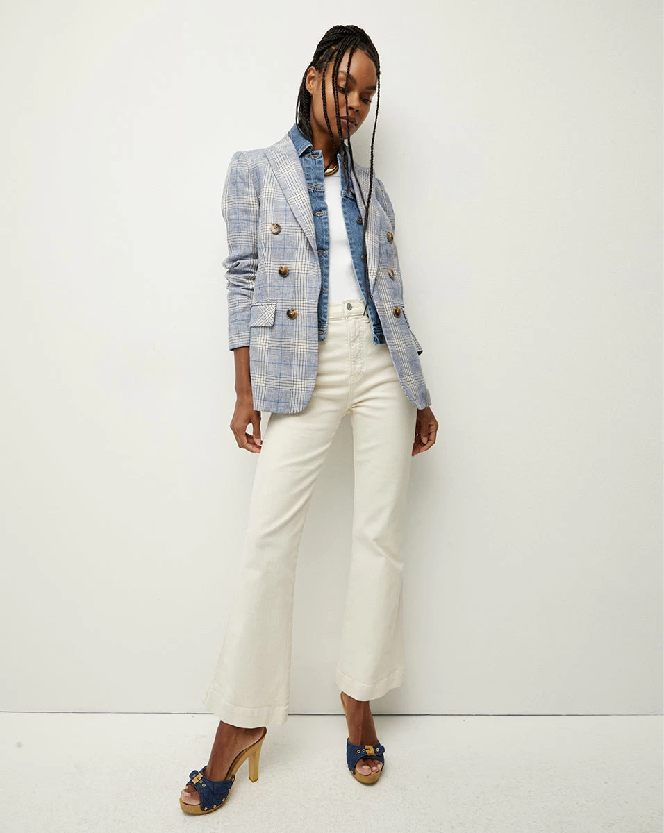 Our bestselling Beacon jacket is updated this season in a cool menswear plaid, on a breathable linen base. In the perfect transitional piece with a denim-friendly blue tone, the made-in-USA Beacon also features an elongated silhouette and gathered sleeves to add to its laidback look. We love pairing this classic-cool style with everything from jeans to minidresses.