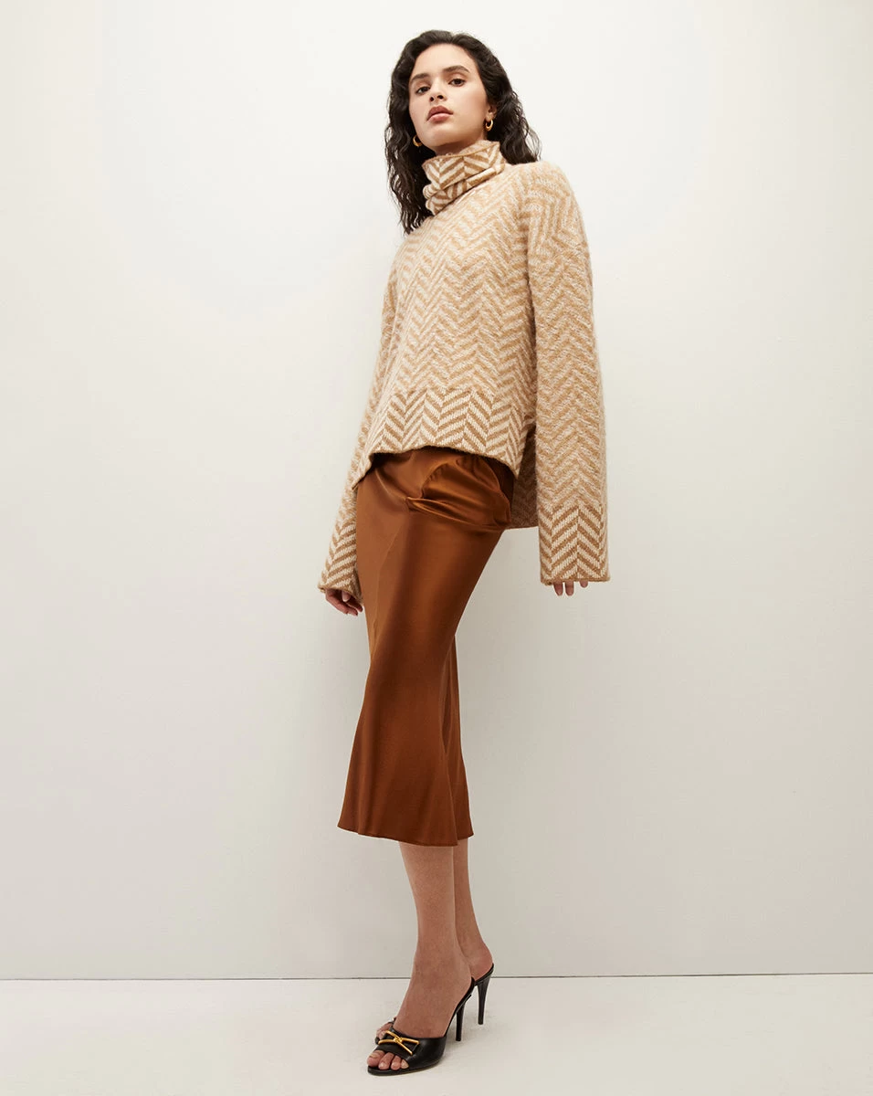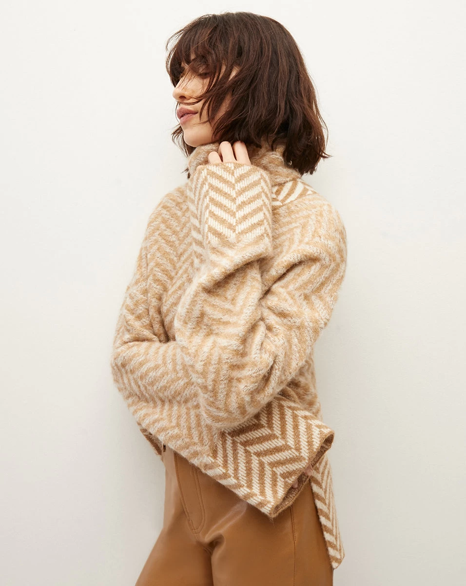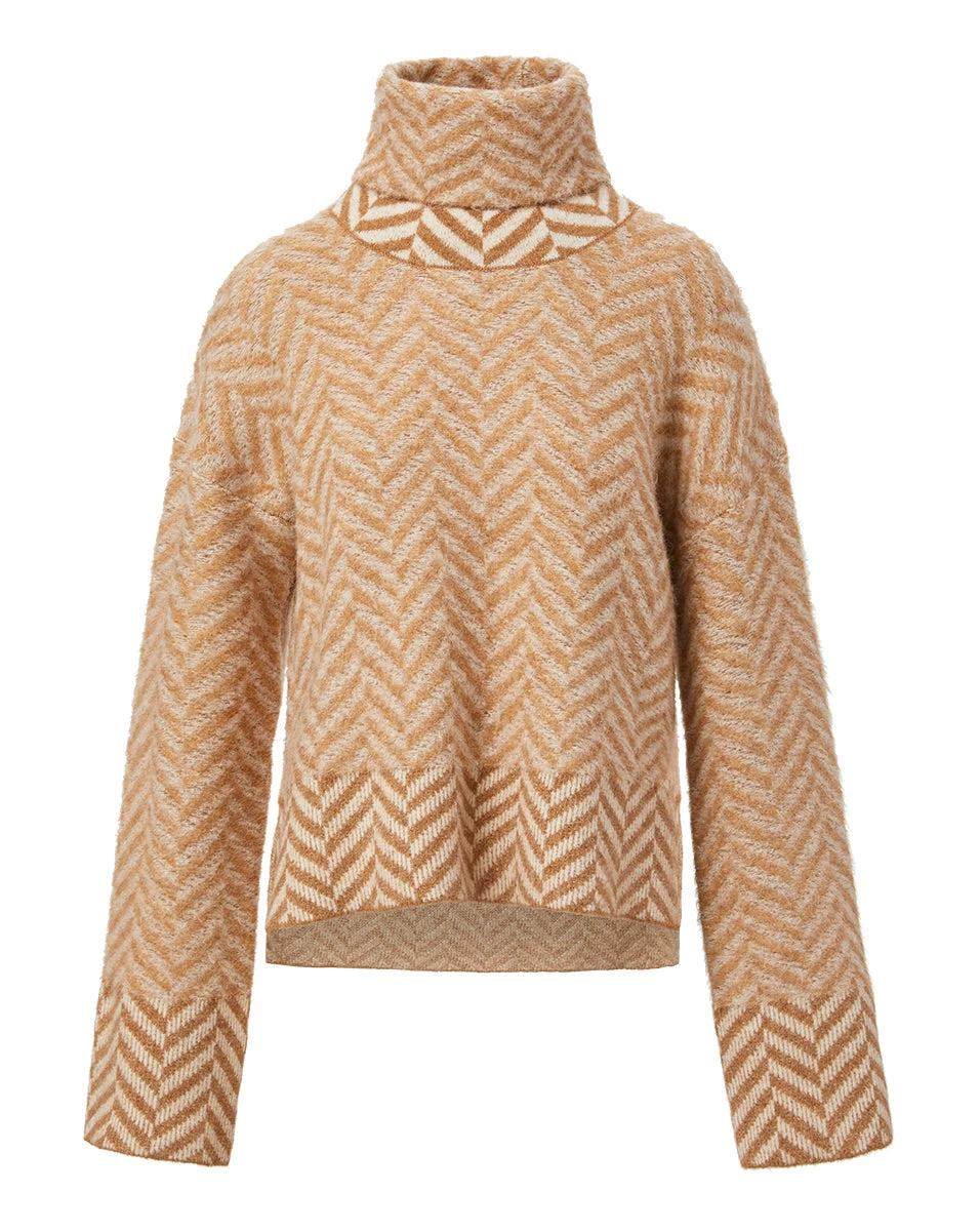Knit in a distinctive herringbone pattern, the Italian-spun Bolina sweater is as luxe as it gets. In our lightweight alpaca blend, this oversized style features a turtleneck, dropped shoulders, and slits at its sides, adding to its relaxed look and feel. Cozy without compromising on chic, the Bolina beautifully showcases the thoughtful consideration that goes into all our knitwear. Pair with tonal pants and boots for the ultimate in refined style.