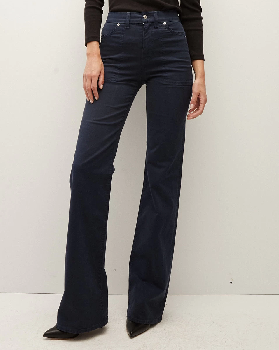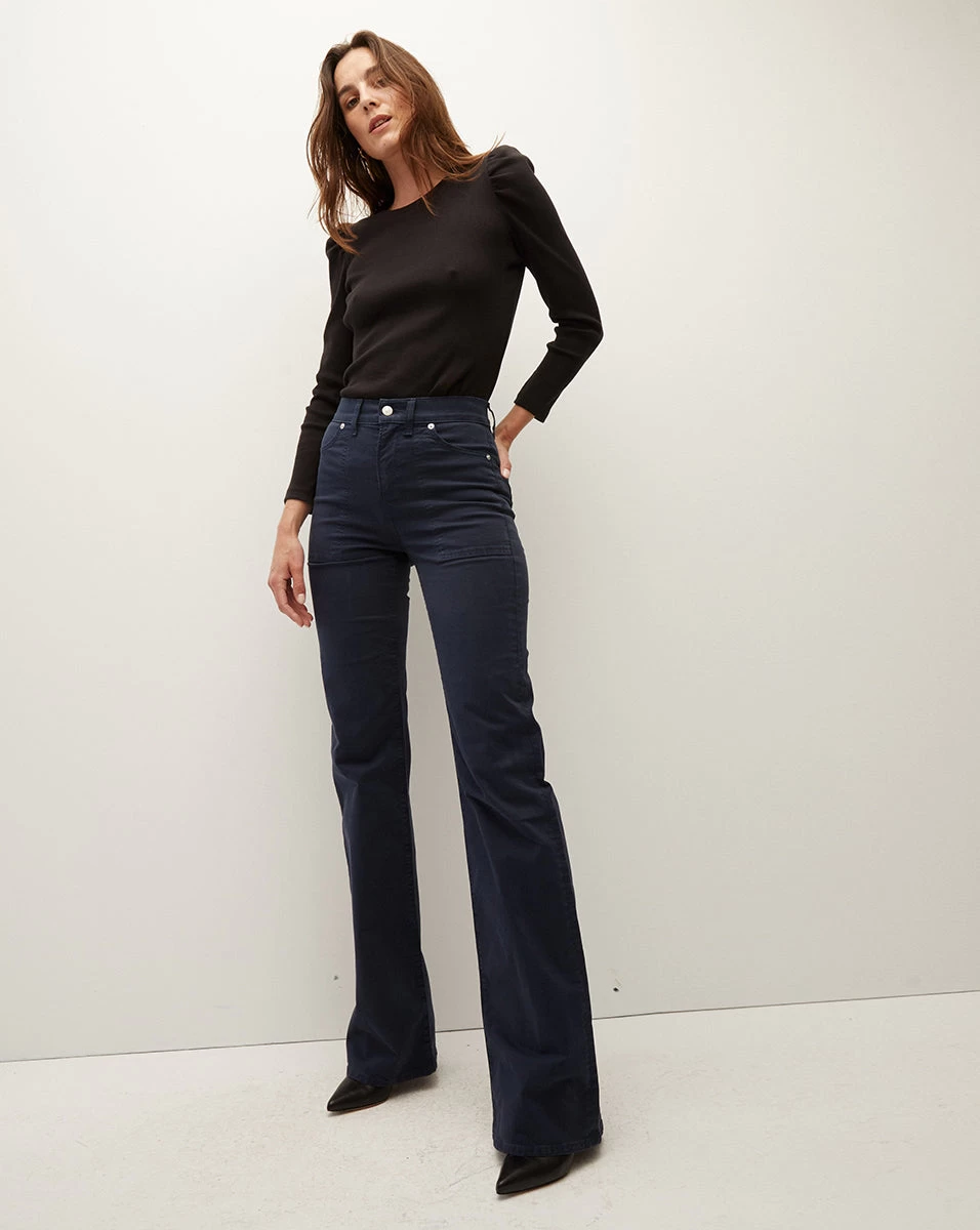 Meet the Crosbie, our elongating high-rise, wide-leg pant. Made in LA in premium stretch cotton from Japan and featuring front patch pockets and our signature V-shape belt loop at the back, this VB favorite is as versatile as it gets. We love pairing this with a simple T-shirt and platform heels for a casual-cool style.