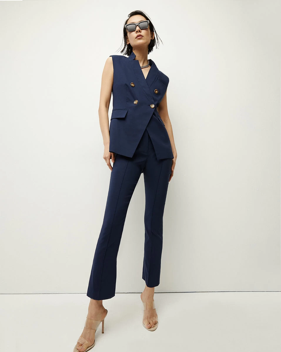 Exceptionally tailored from premium modal, the Dell pant will be your new go-to. Comfortably fitted through the hips and thighs, this high-waist cropped silhouette features front seaming, and a slight flare at the ankle. In classic navy, this timeless piece will easily take you from work to weekend; the high stretch factor makes it perfect for travel, too. Wear with a tonal top for a luxe monochromatic look or keep it casual with a tee and sneakers.