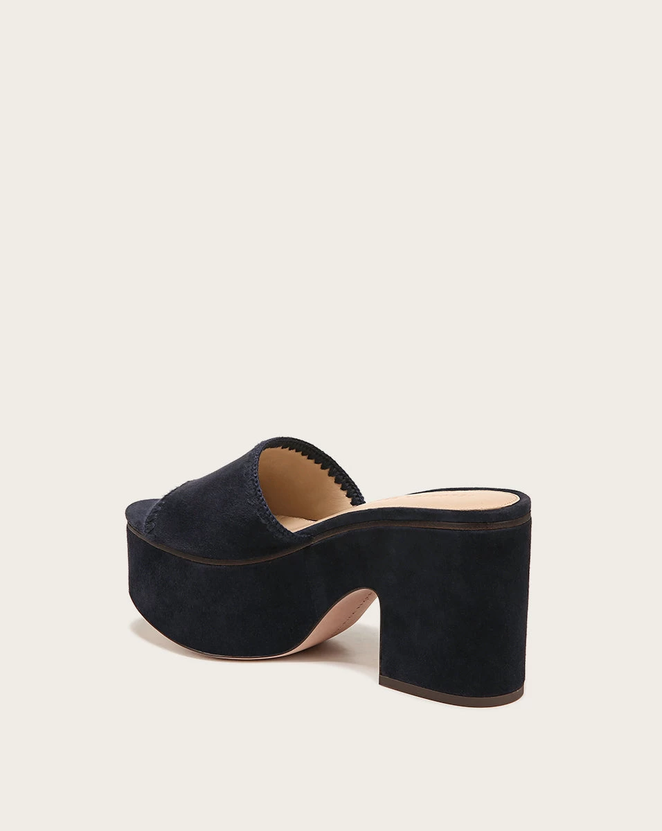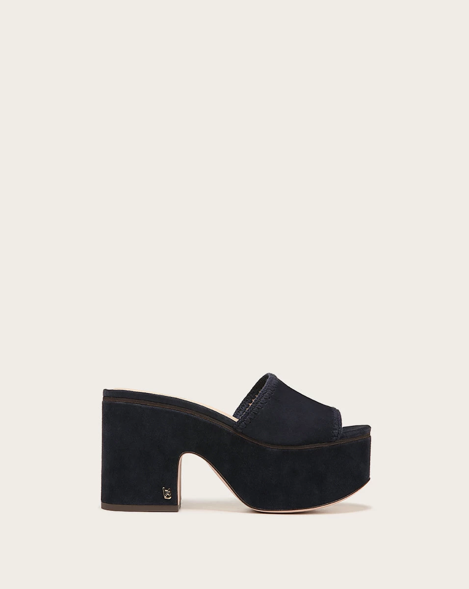 A chunky platform sandal is on everyone’s wishlist right now—it’s the trendsetter of the season, and the Dessie checks all the boxes. In black suede with a 3 1/2″ heel, this easy slide-on style is perfect for your next getaway.