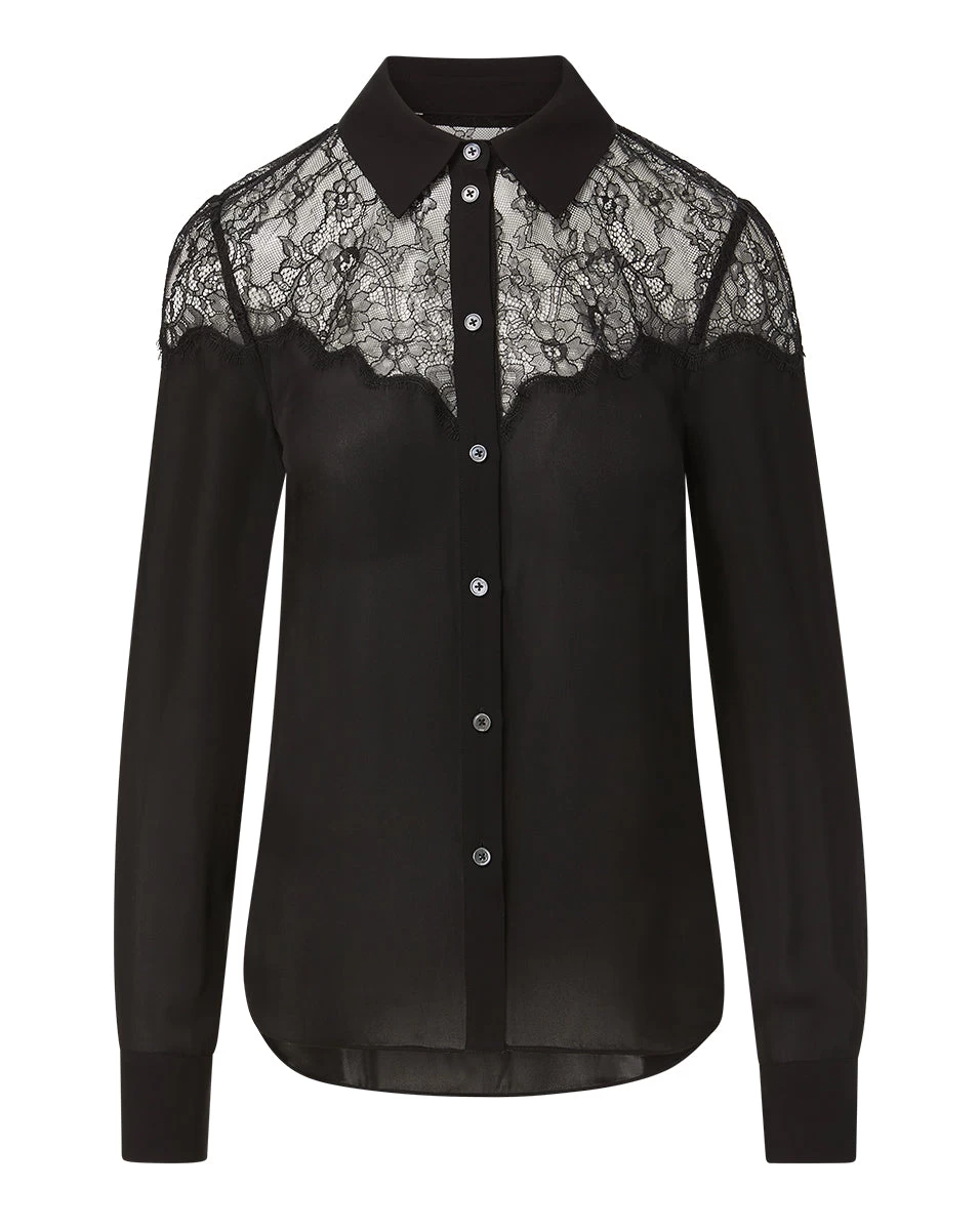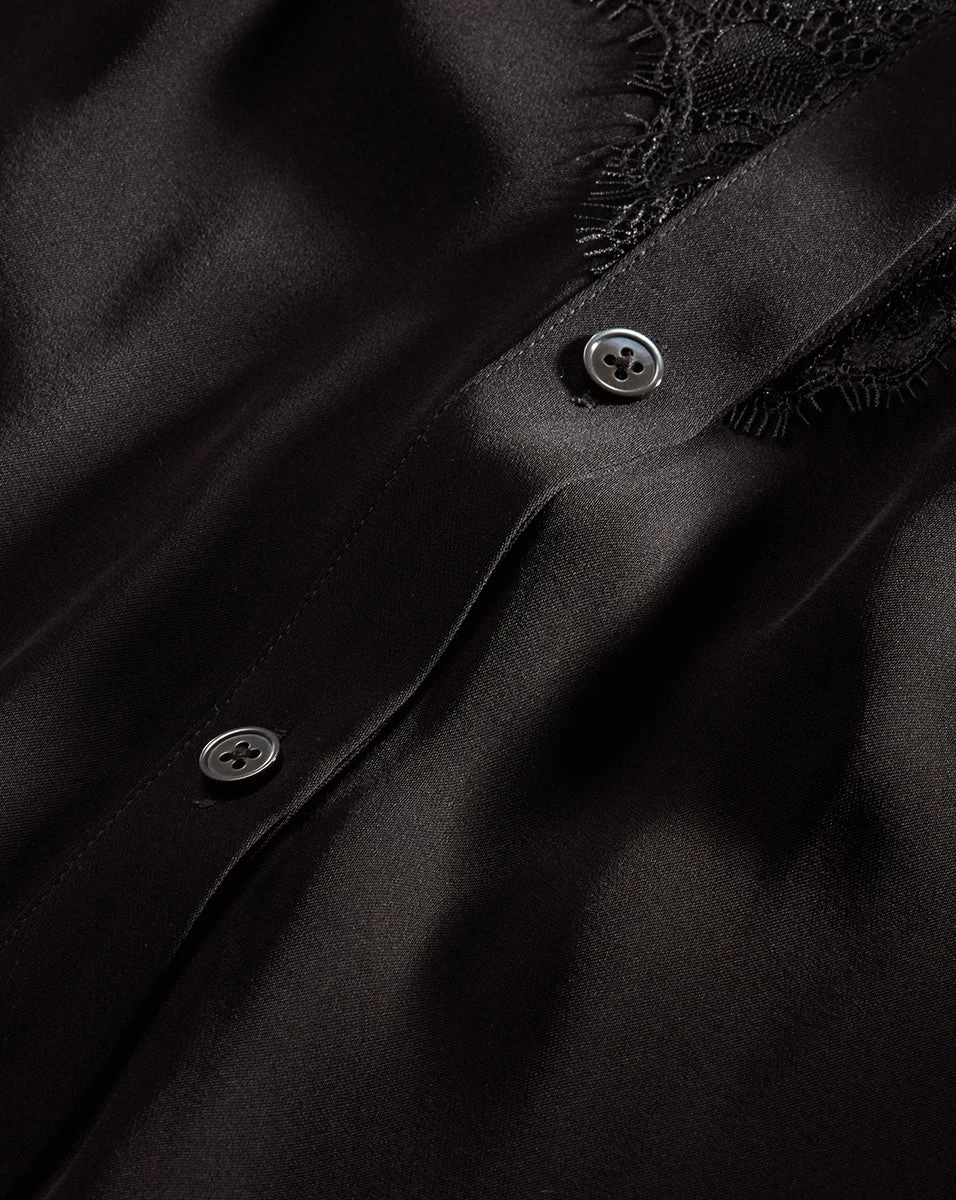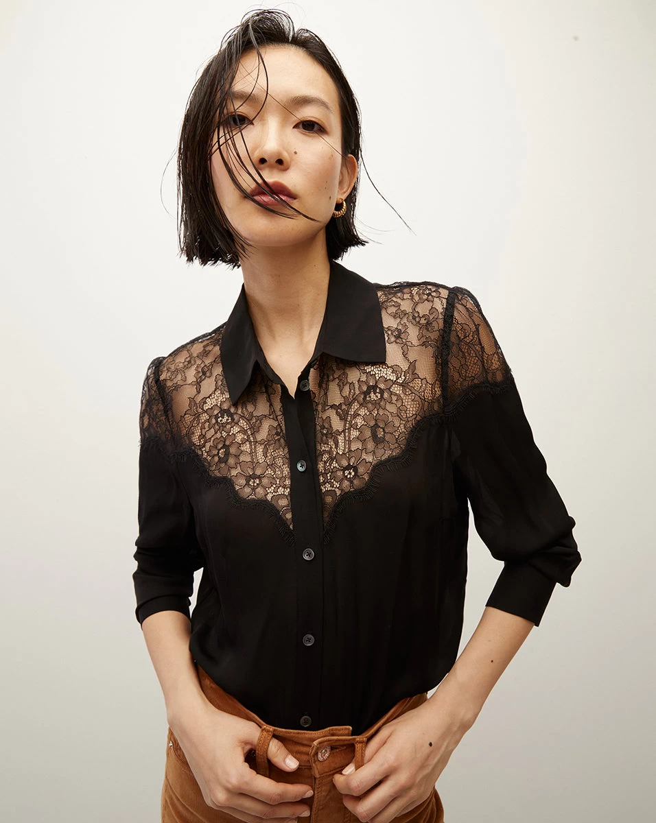 Meet the Greer, a supremely feminine take on the classic button-down—and the perfect day-to-night top. Expertly tailored from a fluid stretch silk, the romantic style boasts soft lace along the yoke and shoulders, a relaxed fit and Mother-of-Pearl buttons down the front and on the cuffs. The gently curved hem, meanwhile, allows for effortless styling—you can tuck the shirt in or out with ease.