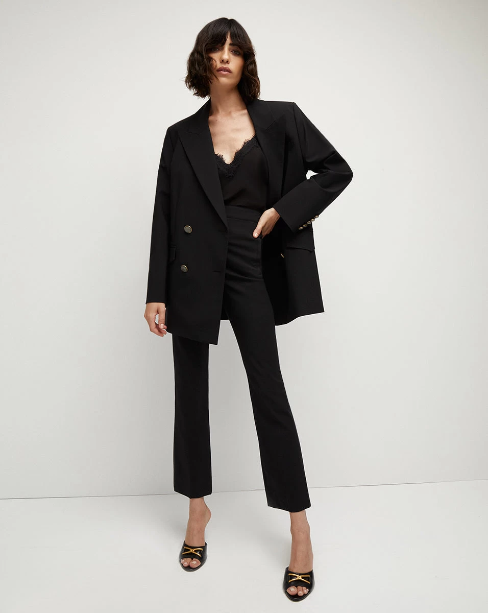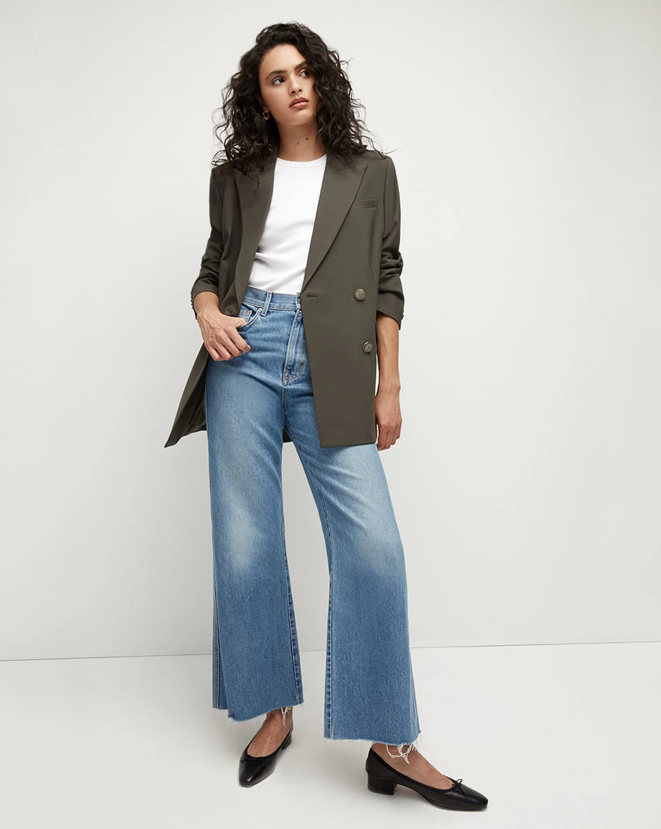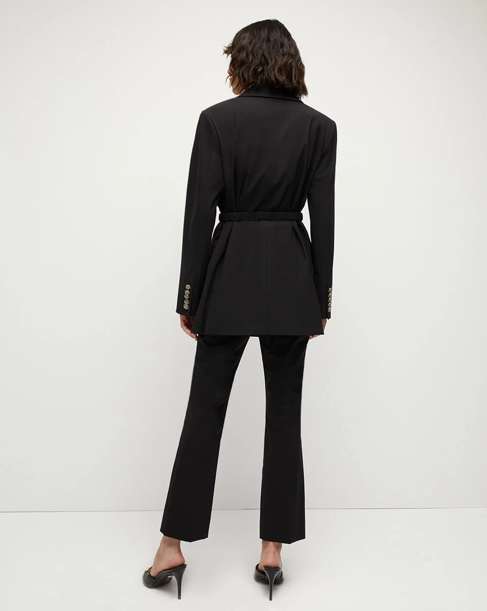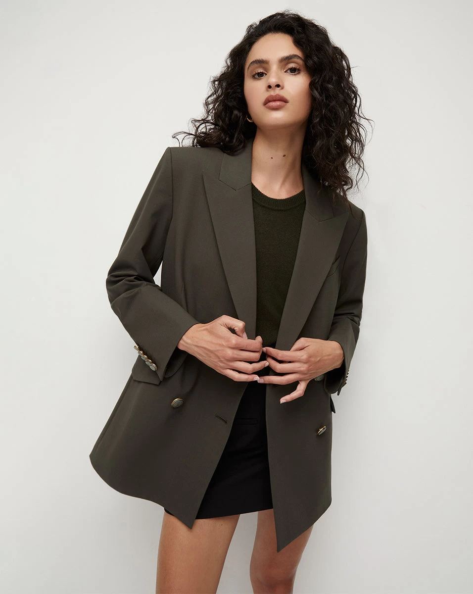 A trend-driven boyfriend blazer with just enough structure, the Hutchinson juxtaposes the casual and refined. Dropped, padded shoulders and a double-breasted silhouette lend the framework to its boxy silhouette, while its coordinating, removable belt creates definition at the waistline for balance. Crafted from our lightweight and breathable wool, this transitional piece is a must-have for fall and beyond.