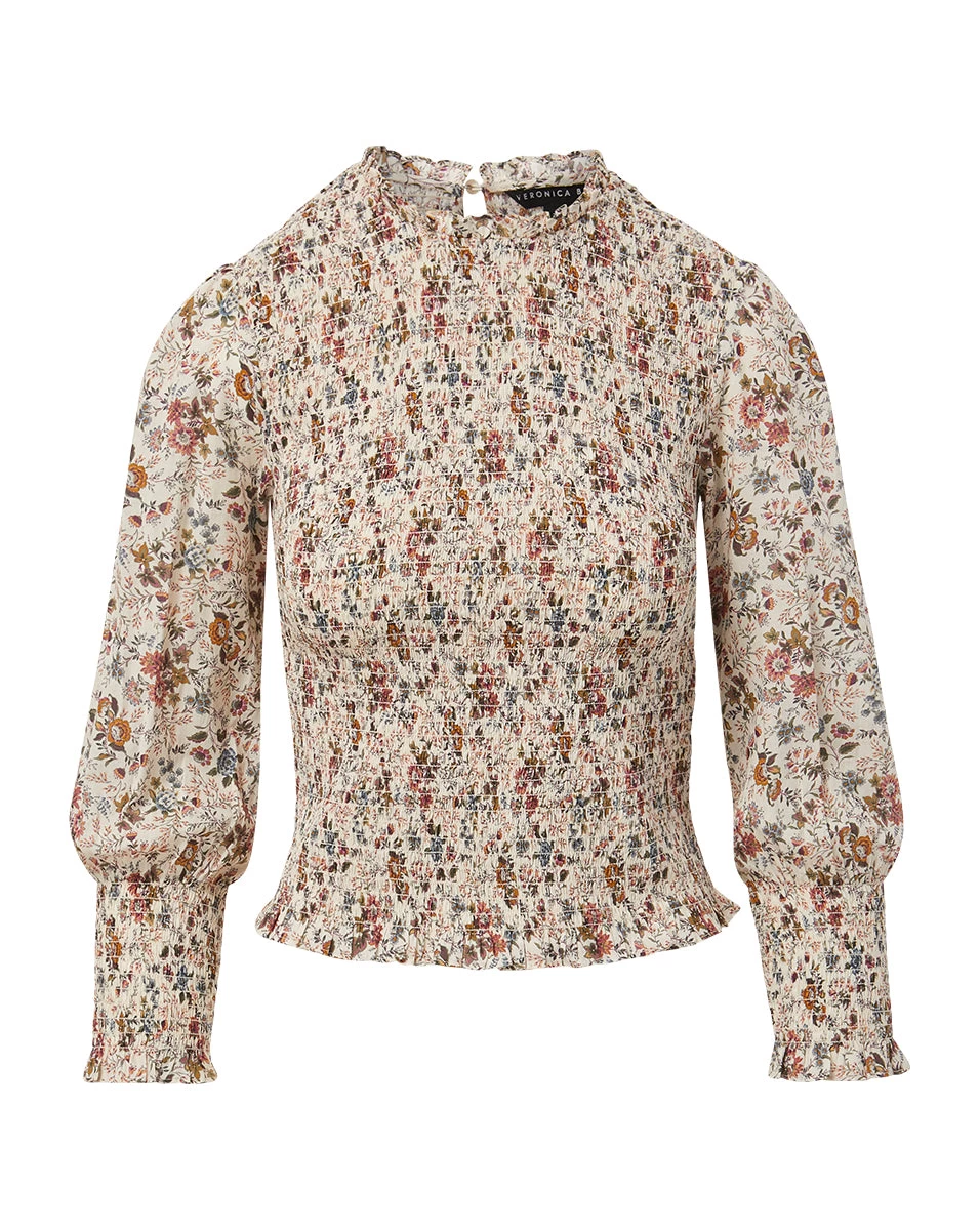 Meet the Kali, the ultimate in feminine ease. Expertly crafted from 100% premium cotton, this floral style features gentle puffed sleeves, tight ruffles at the neckline and strategic smocking along the bodice for a figure-flattering effect. Pair it back to wide-leg denim to balance out proportions, and finish with wedges.