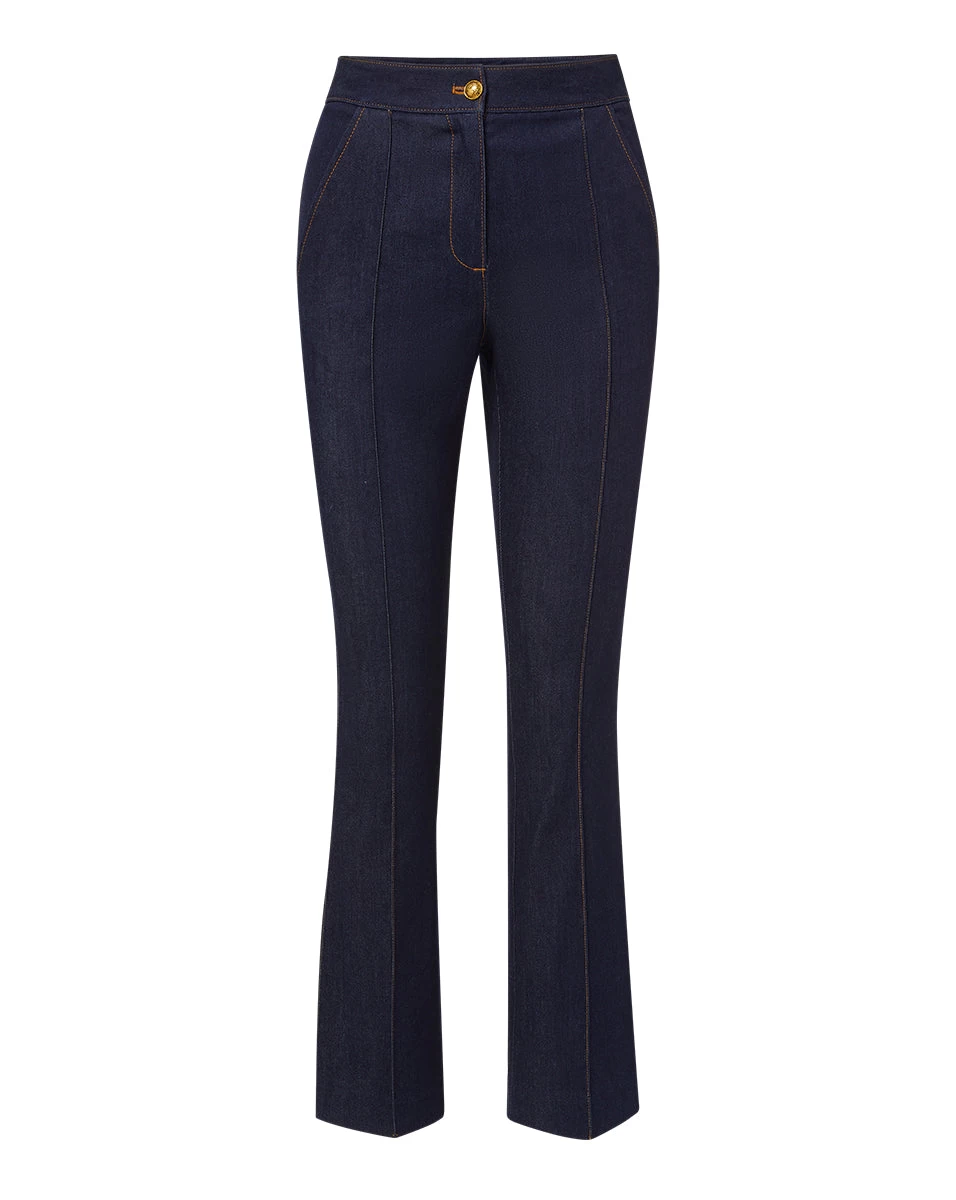 The ease of denim, the tailoring of trousers. Cut from our new stretch-denim in a deep indigo wash, the Kimra pant is the perfect fusion comfort and polish—perfect for days where you go straight to an event from the office. This piece is also detailed with slimming vertical seaming through its straight-leg silhouette and a cropped hemline, perfect for showcasing your footwear. Finished with side pockets, the high-rise style ensures all-day wearability.