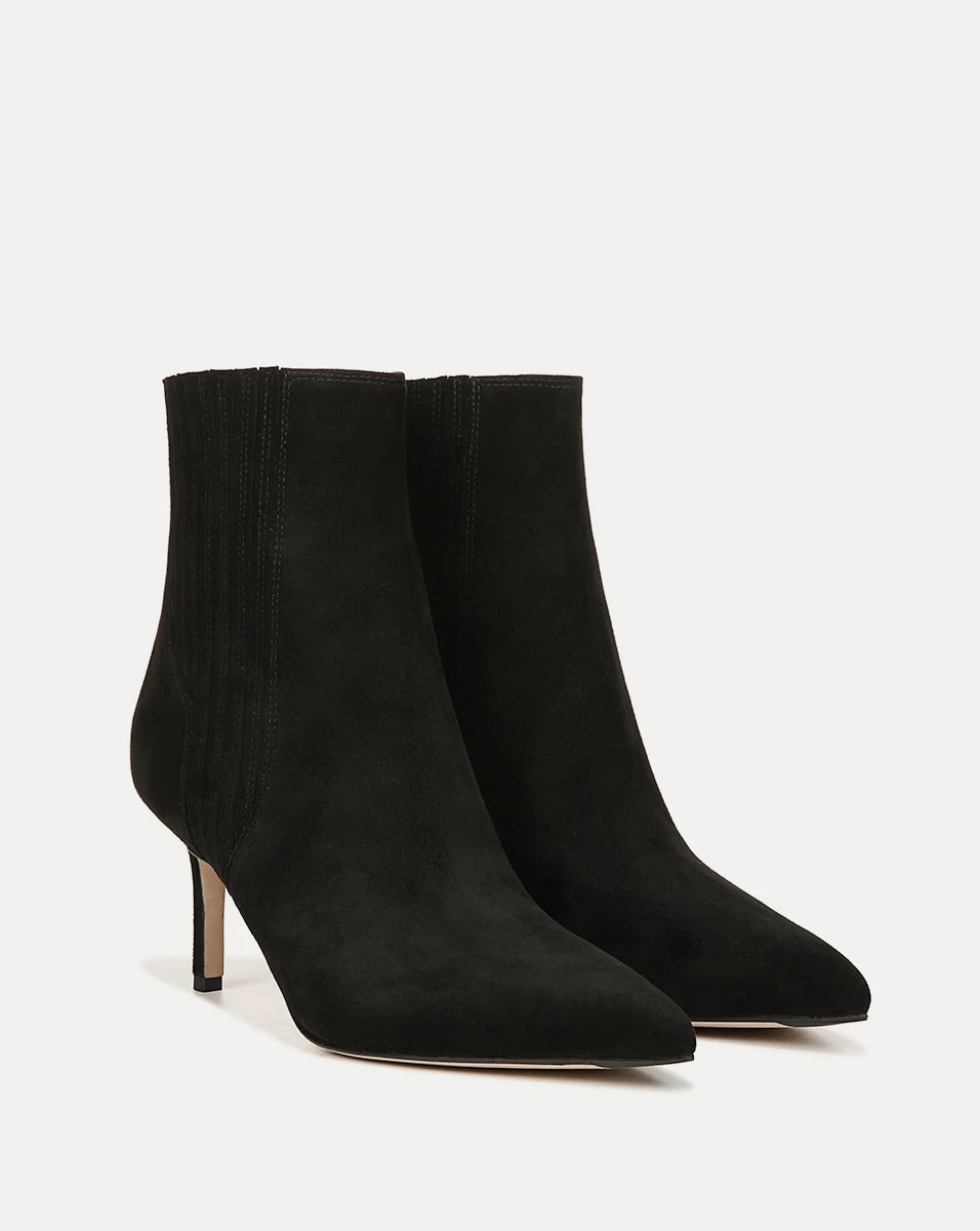 The best-selling Lisa bootie, now updated with a 2.75” mid-heel stiletto. Everything else you love about the Cult Classic remains the same—from the ribbed detailing that allows for pull-on ease to the pointy-toe finish. Style with your favorite dresses, skirts, pants, jeans, you name it—this suede favorite is endlessly versatile.