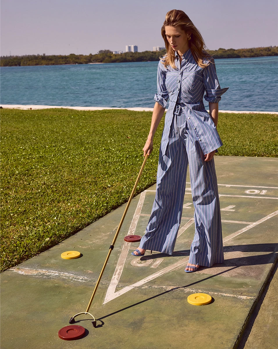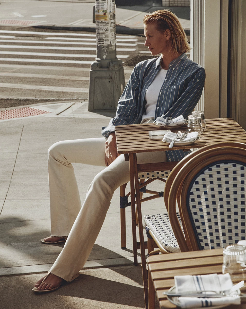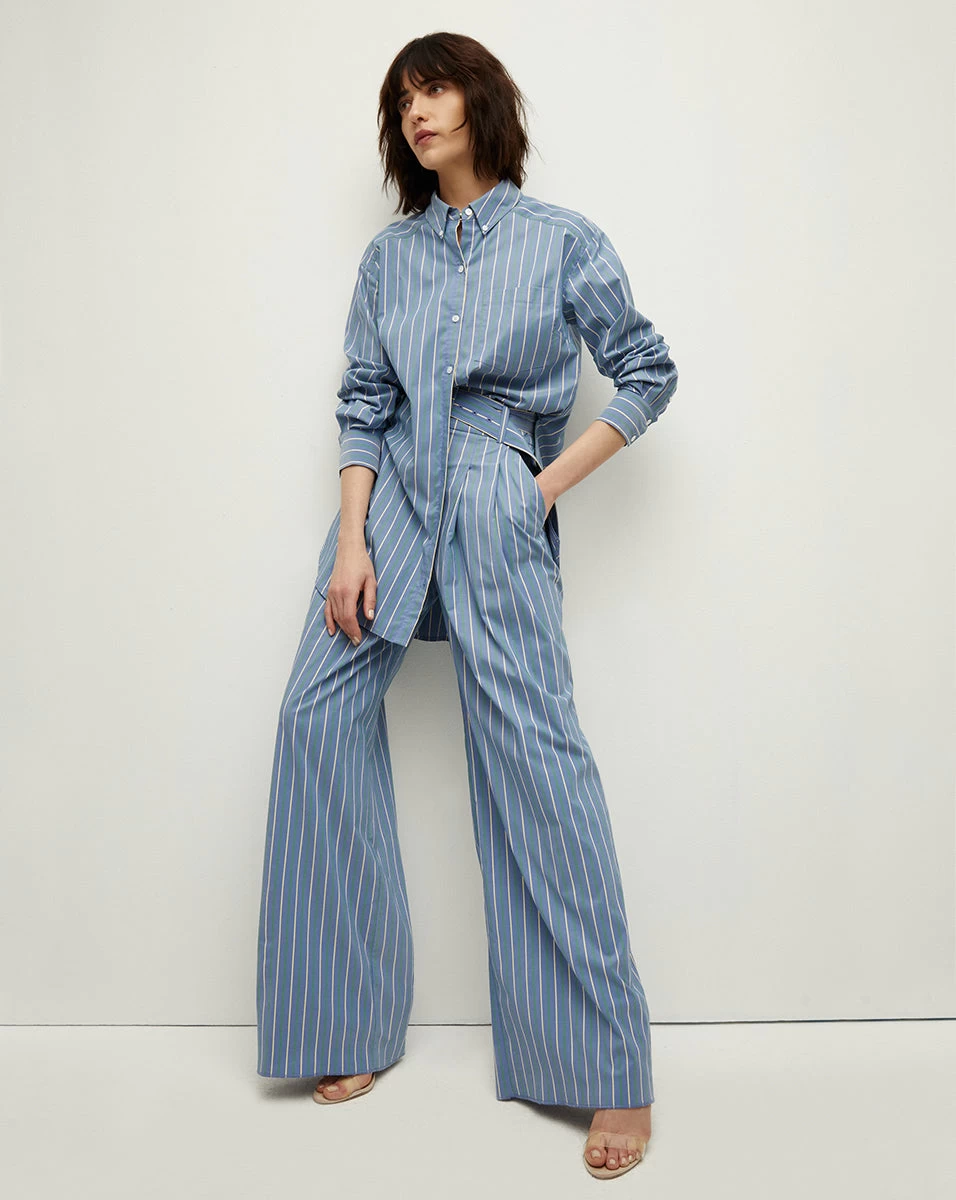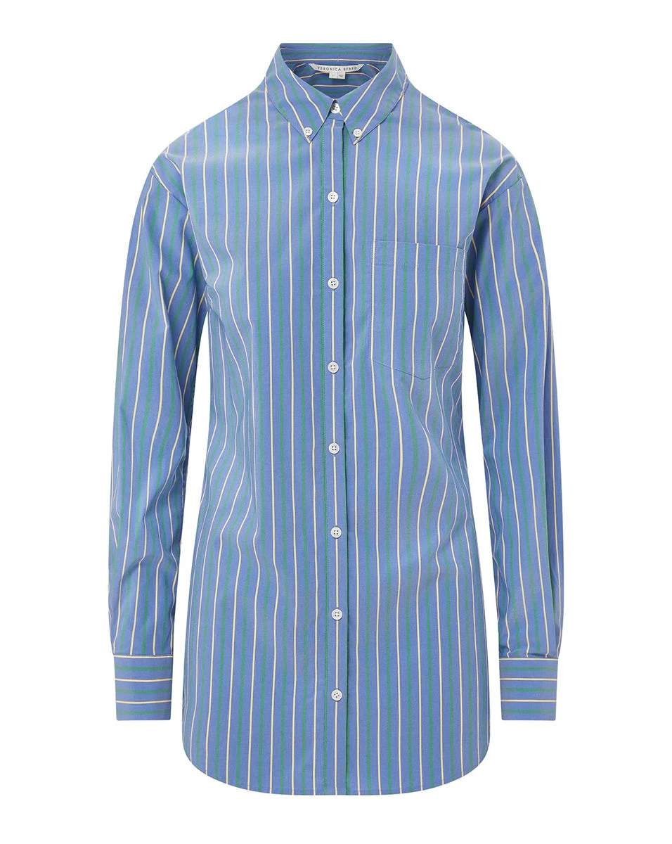 The perfect button-down does exist. Meet the latest iteration of our Lloyd top—a tunic-length piece cut from a tri-colored striped shirting fabrication from Italy. A patch pocket at the chest completes the look of this classic-meets-cool style.