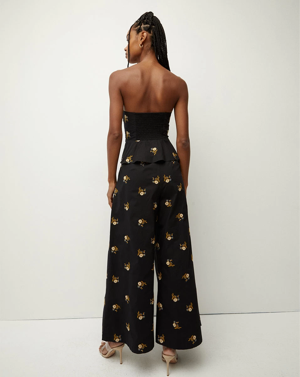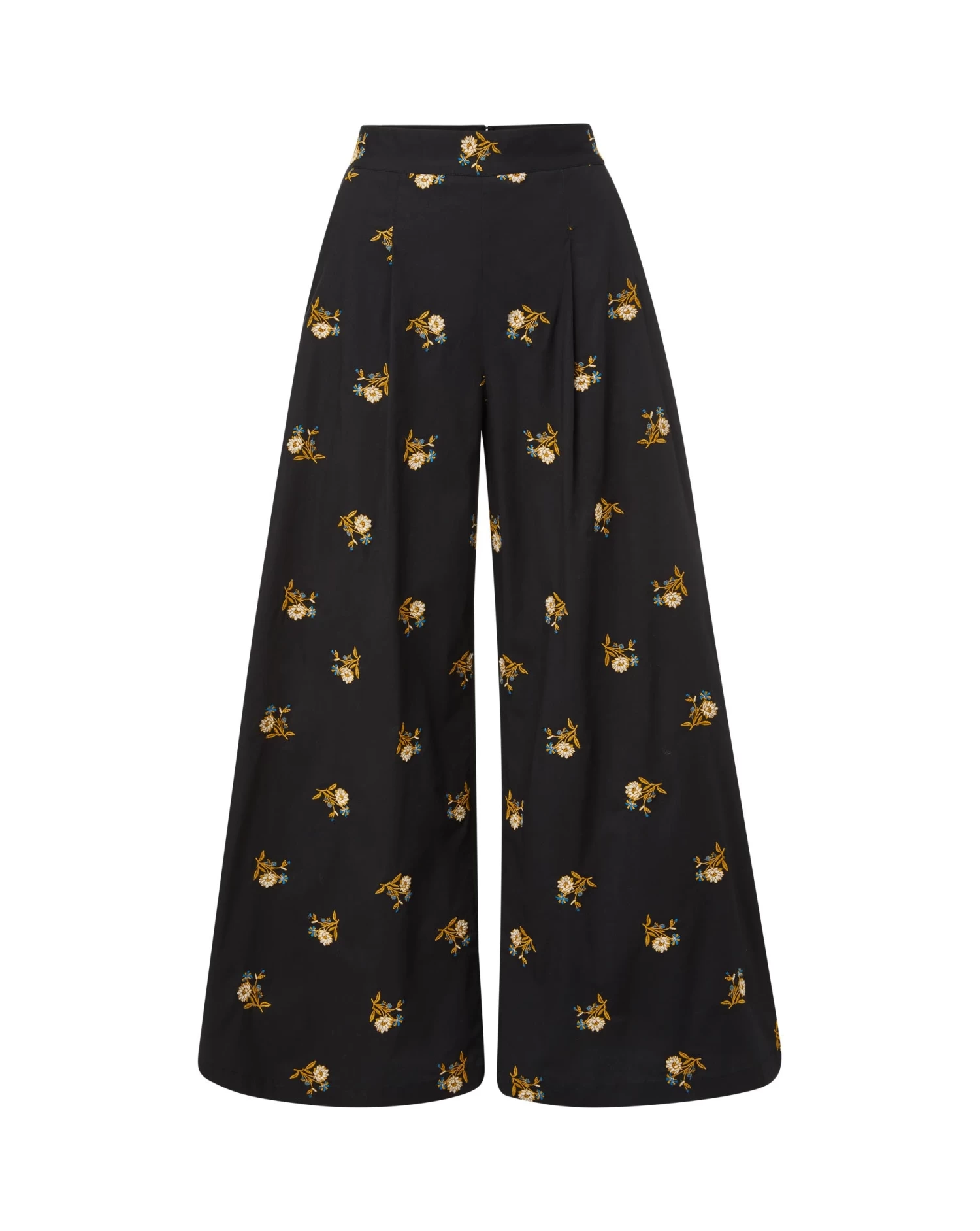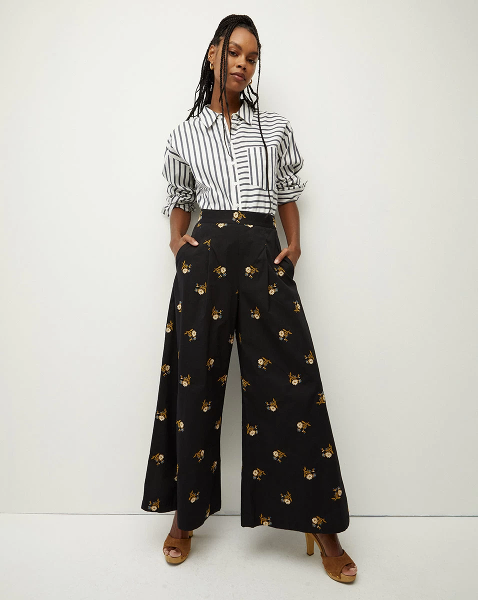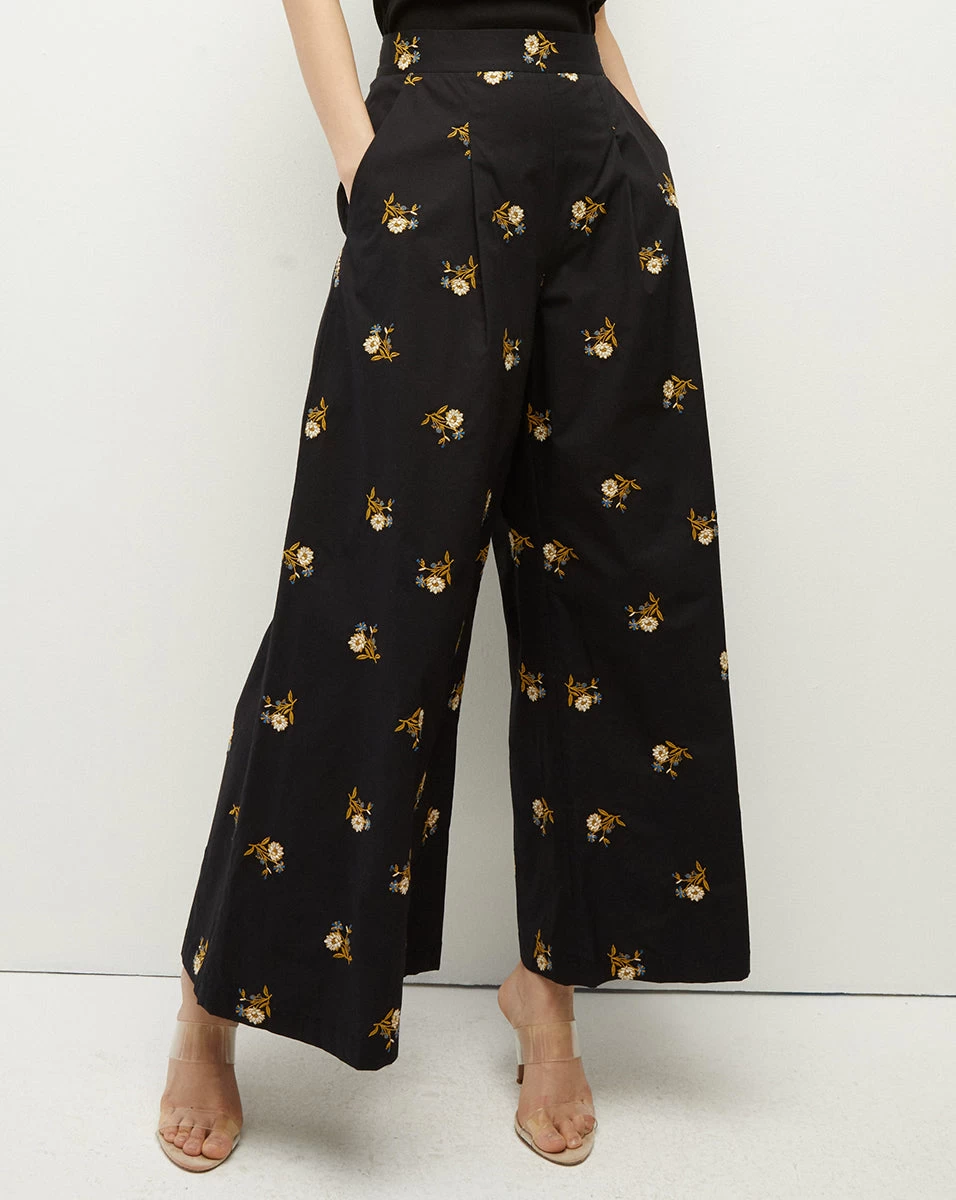 Our intricate floral embroidery romanticizes the look of our Mazum wide-leg pant, offering you an elevated aesthetic along with wear-all-day comfort. They’re cut from a structured stretch-cotton and have a relaxed, wide-leg body. They have a high-rise waist and a slightly cropped hemline, perfect for showcasing your favorite footwear. Subtle fron pleats and side pockets complete the look. Pair with its coordinating top for your next event, or wear with a tucked-in tee and flats for an elegant errands look.Â