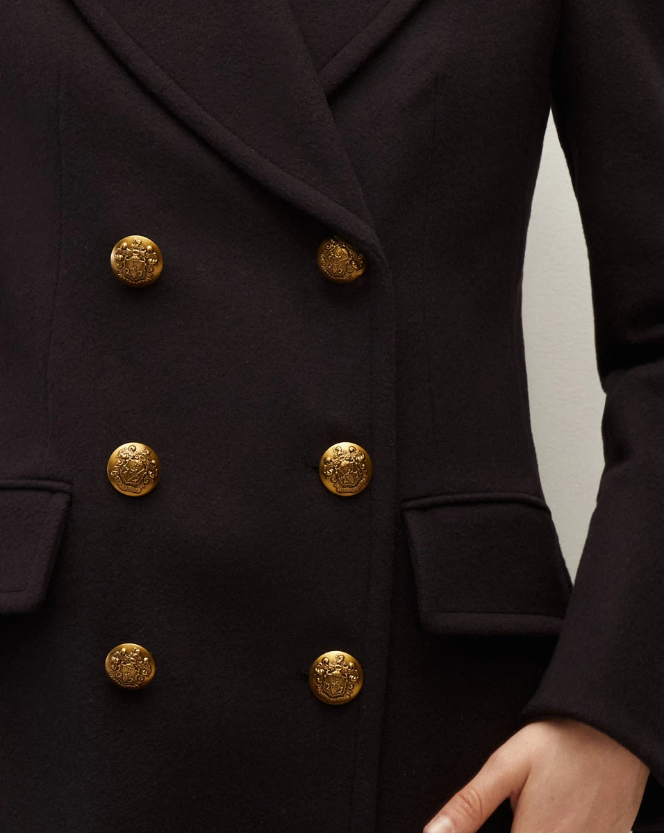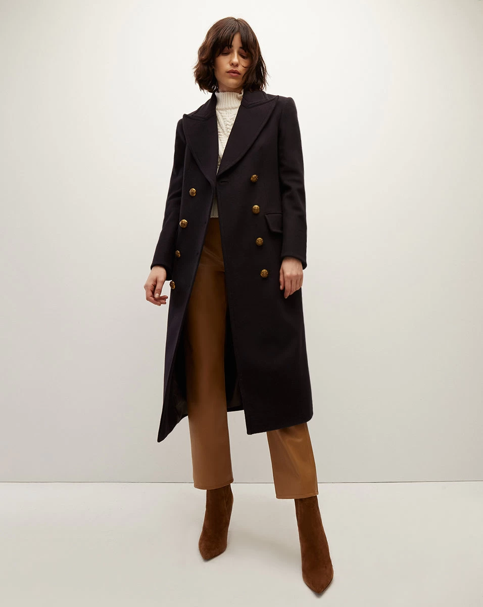 Expertly crafted in a luxe wool and cashmere blend from Italy, the Nalida coat adds instant polish to any outfit. A master class in precision tailoring, this double-breasted silhouette features a slightly nipped waist, flap pockets, our new logo crest buttons and an extra-wide notched lapel. This timeless style will be your next cold-weather go-to—throw it on over everything and anything.