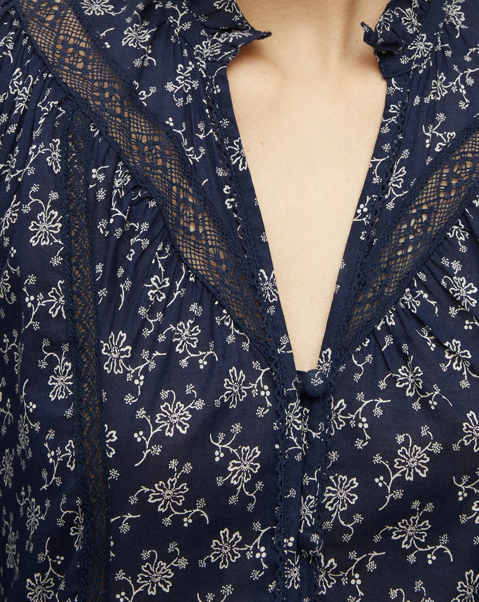 With an ultra-wearable indigo-stamped floral print crafted from breathable cotton voile, the Nayari will be your go-to summer staple. It’s perfectly proportioned with an on-trend puff sleeves, nipped waist and feminine flounce skirt. A split V-neck and allover lace trim add a refined bohemian effortlessness. Wear with flats for day; switch to wedges for balmy nights out.