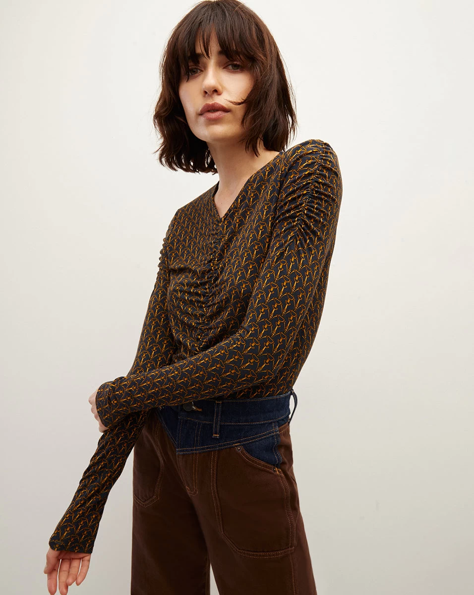 Veronica Beard Neeta Stirrup-Print Ruched Top