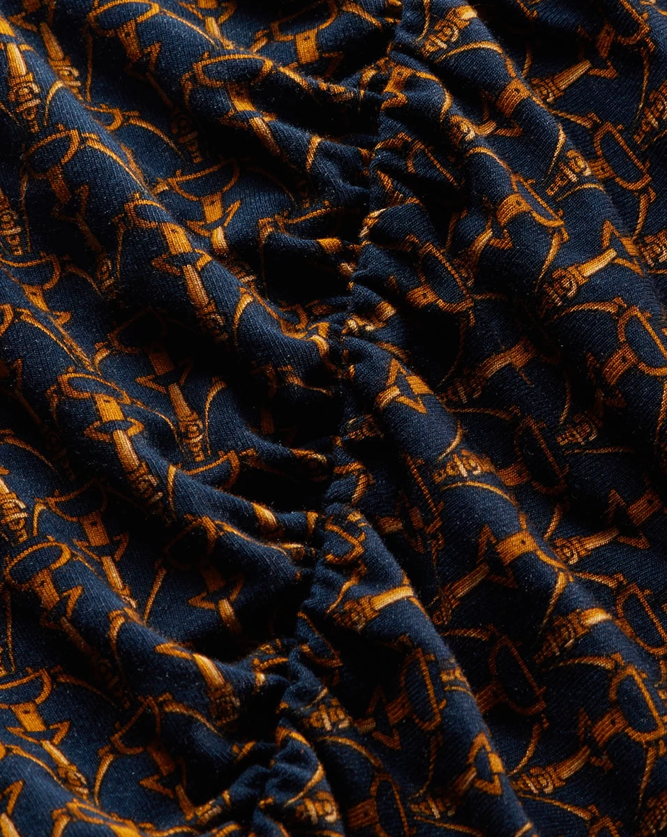 Lean into the equestrian trend with our stirrup-printed Neeta top, cut from a smoothing stretch-rayon fabrication. Strategic ruching along with the front and back provide a flattering finish to this long-sleeved top. Ideal for tucking into jeans, pants, or skirts, the Neeta works as both a standalone or underpinning to your favorite jacket.