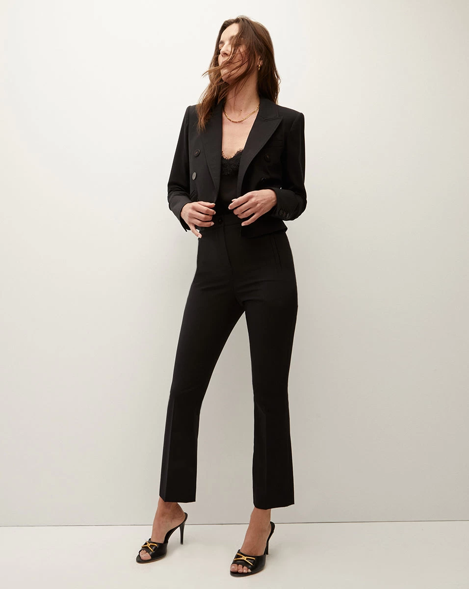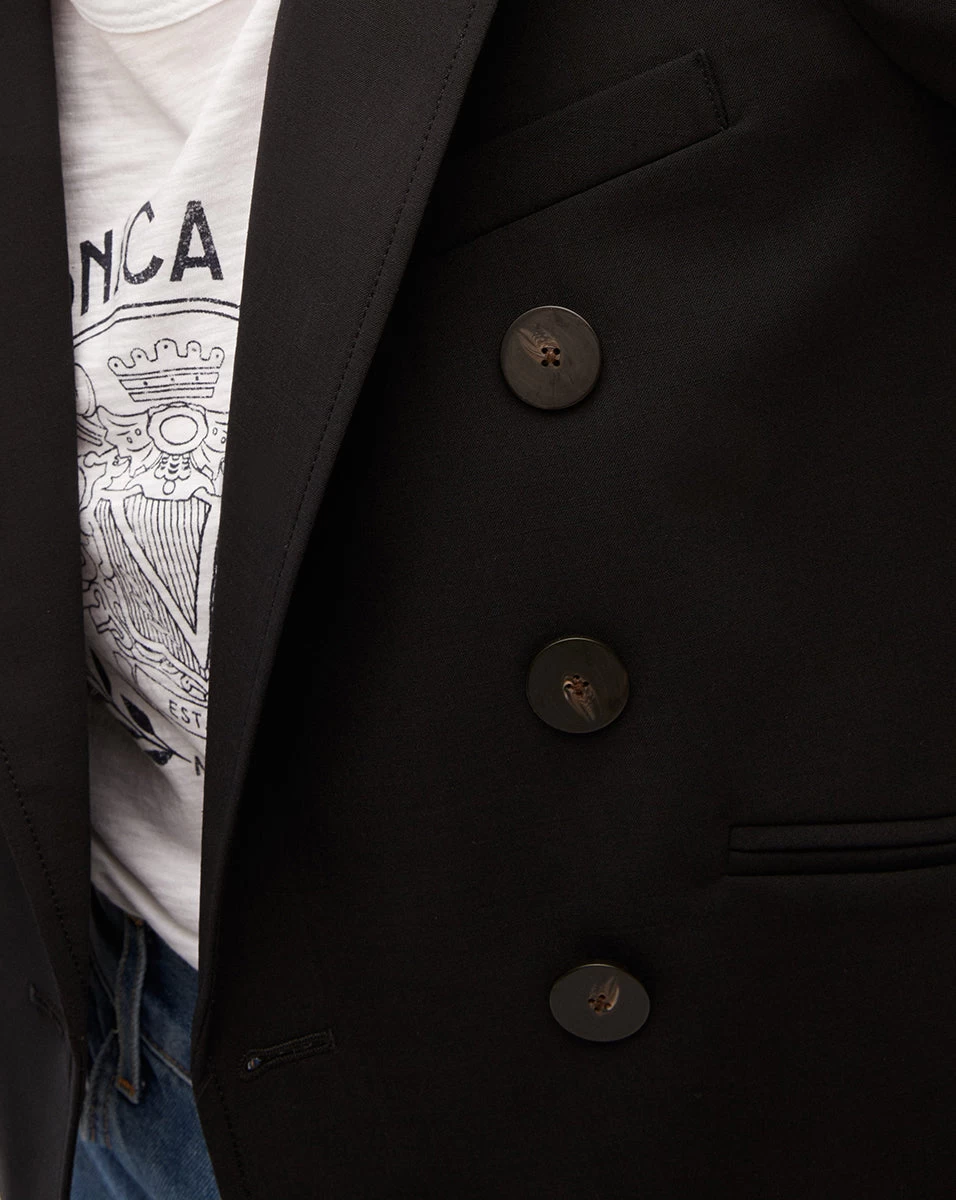 Crafted from our breathable wool, which provides light structure, the Nevis is a transitional cropped jacket that works well with your high-rise jeans and pants. The lightweight fabrication allows for warm-weather wear, while the double-breasted silhouette keeps it refined and polished. Try styling it with your favorite dress, too; just add heels.