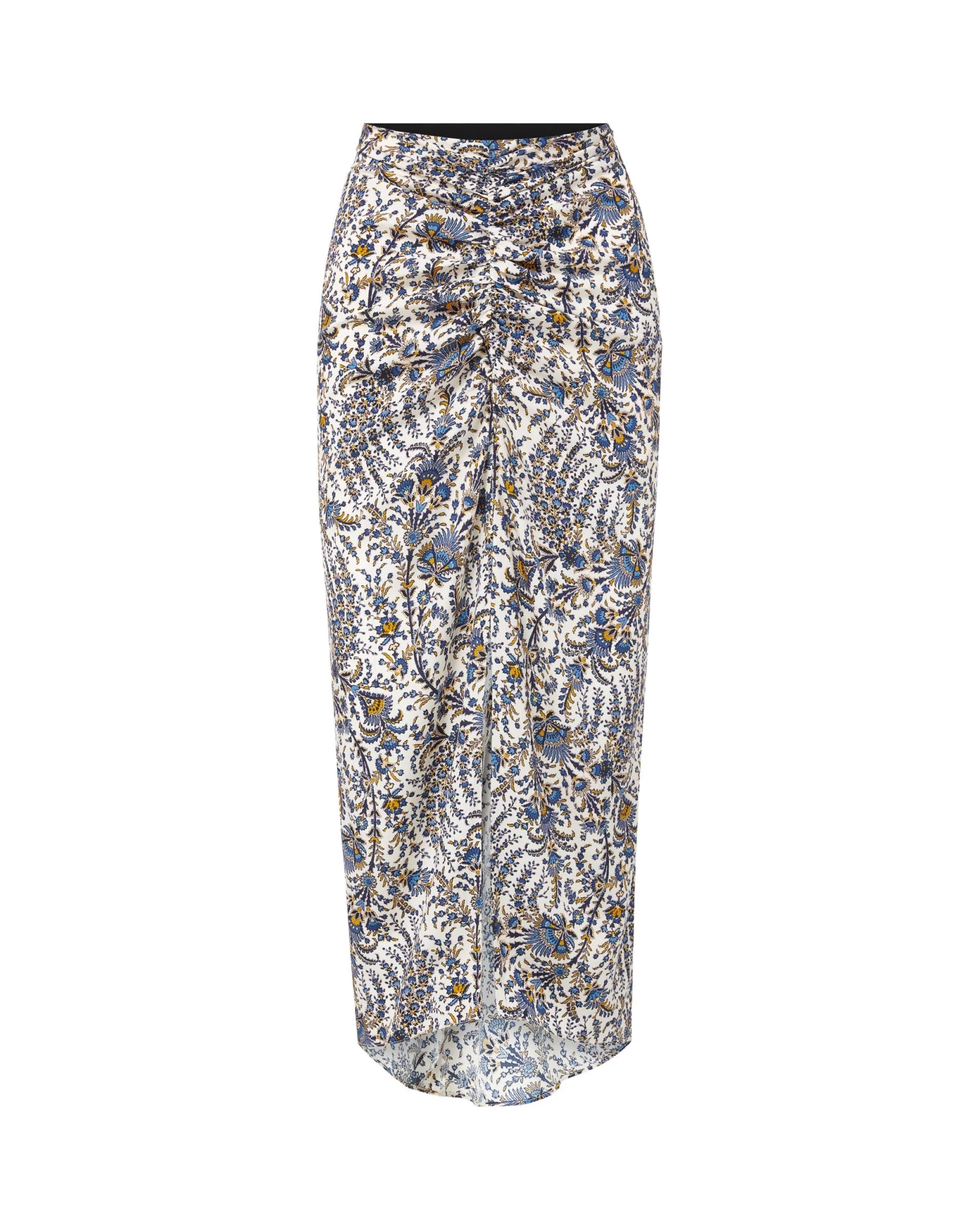 The best-selling Pixie skirt is back, now updated in an ornate floral print. Crafted from a luxe stretch-silk blend, this versatile midi features a front slit, center ruching and a chic high-low hem. Equal parts relaxed and refined, this will easily take you from desk to drinks, weekend to wanderlust. Try it with the matching Henrieta top for striking allover florals.