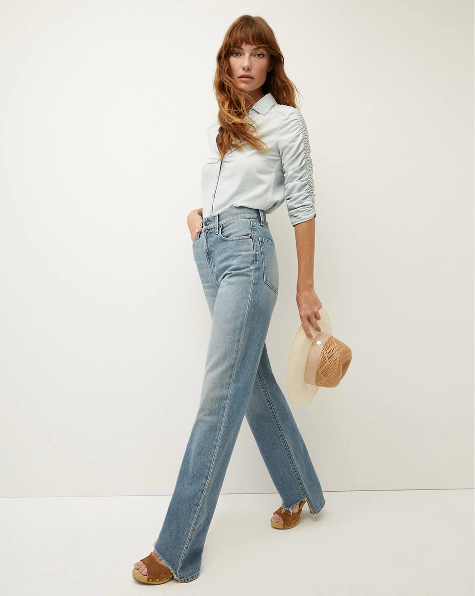 The chambray shirt your closet needs. Classic with a modern attitude, this style’s light wash and snap-button closure keep it classic while gathered-half-sleeves add a sense of undone femininity. Darts at the chest give it a tailored finish. The Porta wears well with others— it goes with anything and everything but we especially love it paired with jeans for chic denim-on-denim look.