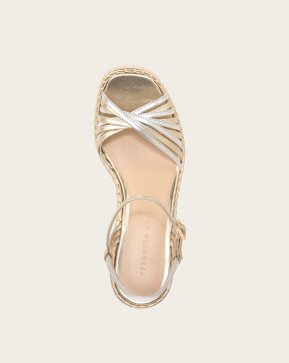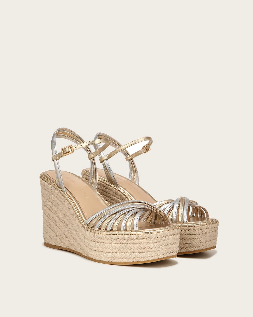 Lead the way with the Ravina Espadrille Sandal. Featuring a strappy metallic nappa leather upper, ankle straps, and braided jute heel, this go-to summer style will elevate all your looks. Pair with your favorite floral dress to amp up date night or try them with distressed jeans and a tee for a polished take on everyday ease.Â