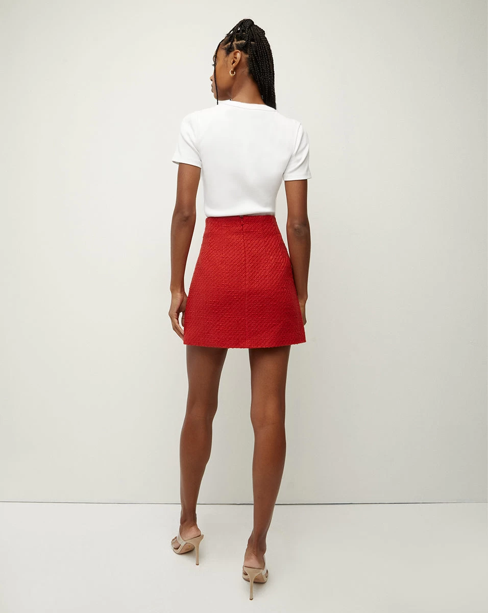 A great tweed skirt is a cornerstone of every wardrobe. We elevated ours with a flattering A-line silhouette and beautiful basketweave tweed in bright, bold red. Exceptionally tailored from environmentally conscious BCI cotton, the mini also features slit pockets and a hint of stretch for ease. Pair with the coordinating jacket for ladylike polish, or dress it down with a tee and sneakers.