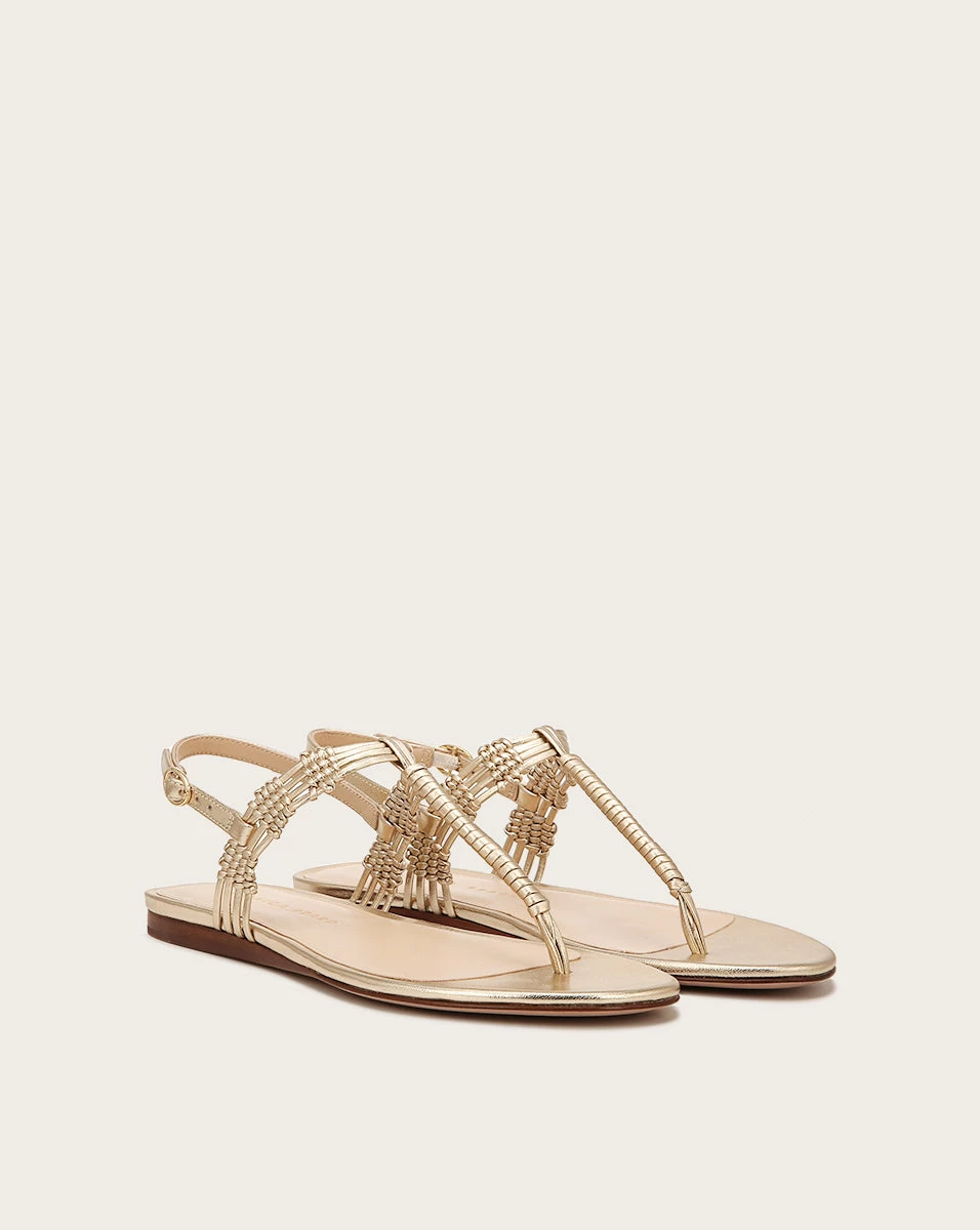 Meet Sola, our refined take on the quintessential summer sandal. A timeless thong silhouette and a cushioned footbed make this a versatile favorite while the intricately crafted leatherwork—in high-shine metallic gold tones—ups the sophisticated ante. Effortlessly comfortable, this looks as good with pants as it does with dresses.