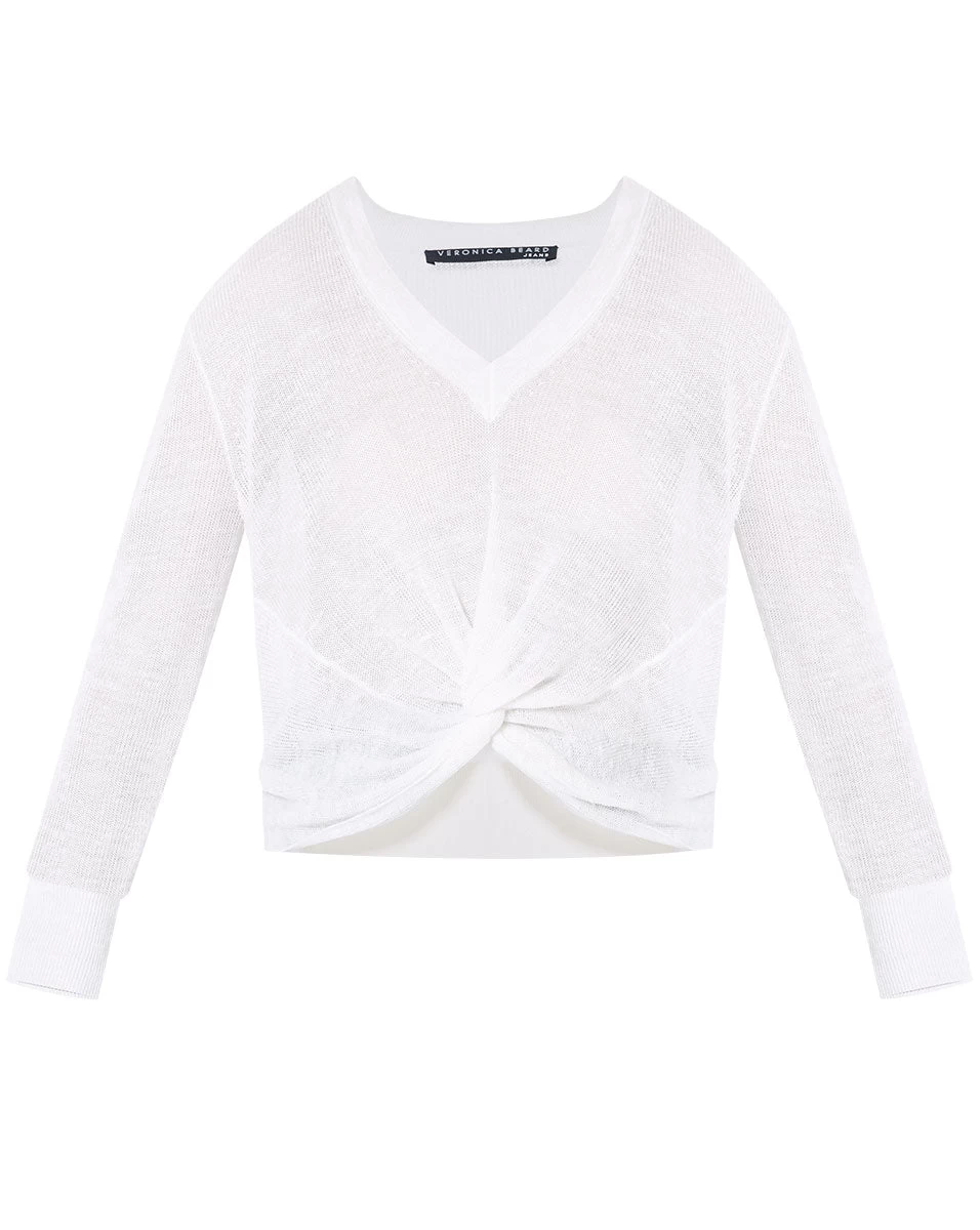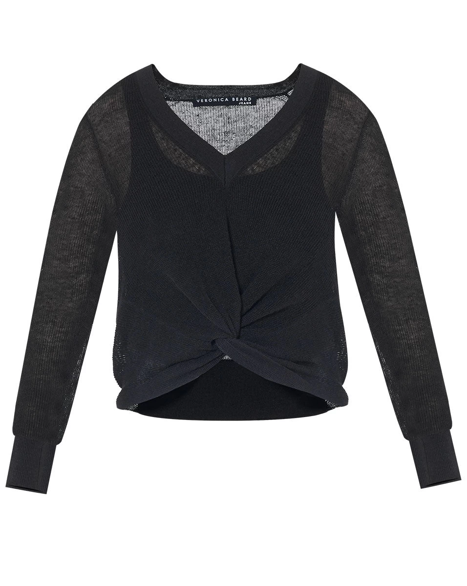 A twist-front detail puts a contemporary touch on our Soren Sweater. This semi-sheer linen-blend pullover is designed with a V-neckline and dropped shoulders.