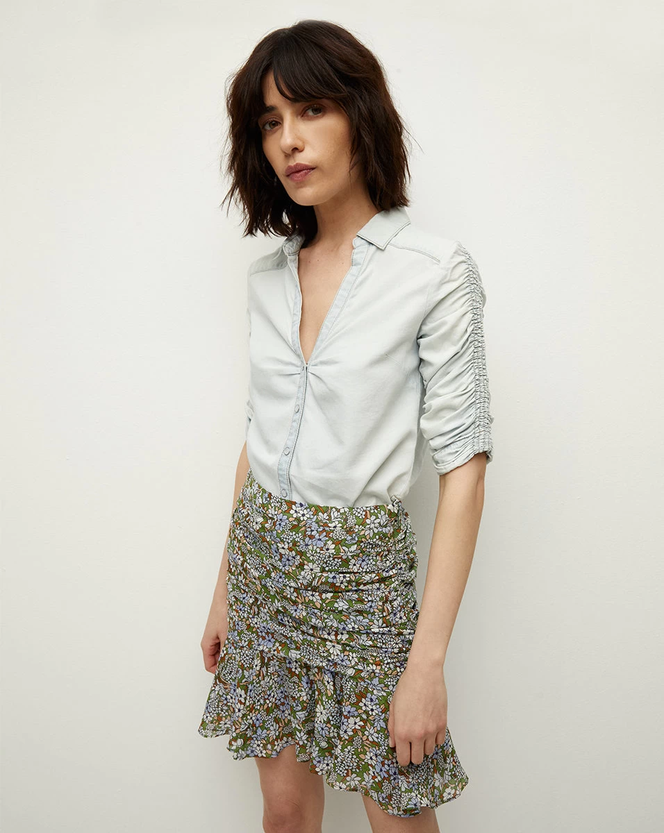 Feminine meets fabulous in the Taras skirt. This flirty silk style is designed with our signature ruching and finished with a flounced hem. Let the floral print stand out and pair with a solid blouse.